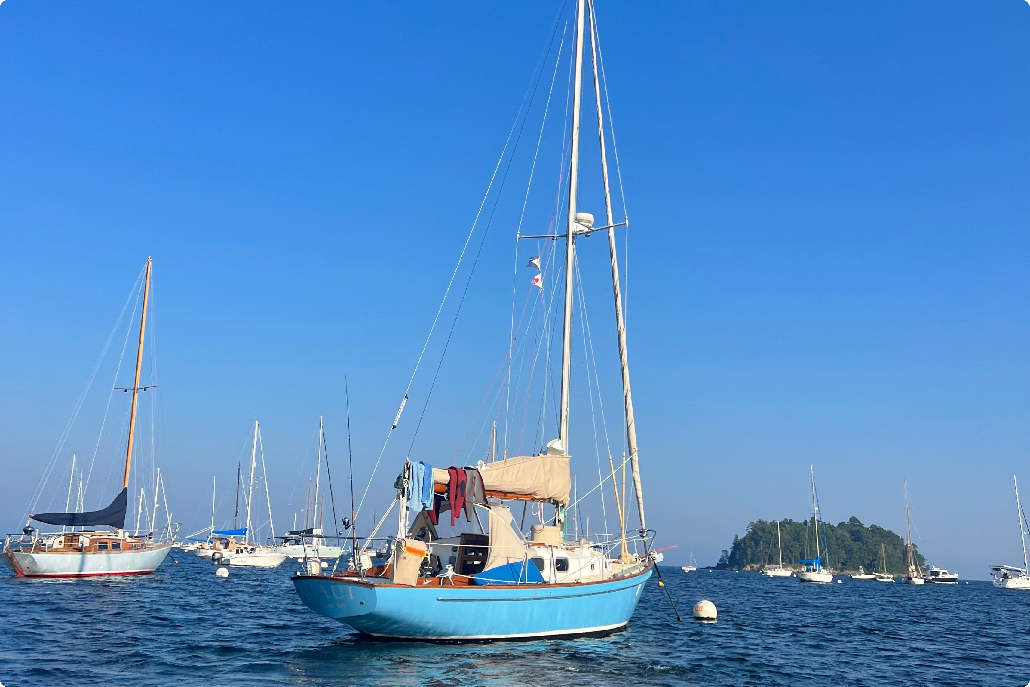 Maui, my 1967 Alberg 35, and I have a working arrangement: I pick a general direction, she handles the rest. She’s been at this longer than I have, so I trust her on it. We work our way up the Maine coast harbor by harbor, reading the weather, reading the tides, anchoring off-the-grid where the holding is good and the swing room is good enough (queue the stern anchor!).
